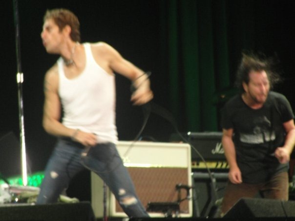 Example, at ACL (Austin City Limits) in 2009 Pearl Jam was one of the main headliners. There were over 50,000 die-hard PJ fans there to see them perform. I knew that if I were to get near the stage I would have to stake my claim early—as in PJ wasn’t going on until 9:30PM and I had to start lining up at 2PM. Luckily there were really great bands playing on the main stage prior to PJ because once you stake your spot you can’t leave. You can’t go get more to eat or drink, you can’t go to the bathroom, you can’t really even sit down. Especially with ACL 2009 like so many of them it was a mud bath thanks to all the rain. I stood in the steamy mud, by myself, no drink or food, just to be close up to see Eddie Vedder do his magic. The cool thing about these types of situations is that you really aren’t alone, especially with an act like Pearl Jam, as they have a lot of dedicated fans doing the same thing. Over the course of several hours I made friends with people from all over the US: 2 guys that flew down from Long Island, NY to see the band; one guy who was a 10 Club member who had followed Pearl Jam for over 14 years and had come from Colorado; a young couple who were coming to their first Pearl Jam show. All of us stood in the wet mud, united in a cause (love of Pearl Jam!) for hours. Was it worth it? Hell Yes. Eddie ended up bringing out special guest Perry Ferrell along with other special guests who played for a very long time. Did I miss my other friends? Of course. But I promise the experience up close isn’t anything like far away.