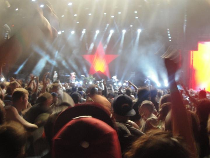 Speaking of Rage Against the Machine: probably the craziest concert experiences of my life was at the Rage Against the Machine reunion in 2011 in Los Angeles. It was their only show that year (and the first in years…first L.A. show in over a decade). Rage as a band was born and bred in East Los Angeles, with songs that pulse with emotions, overcoming oppression in various forms and redemption. Rage was the headliner and they had several great opening bands like Rise Against and Muse (side note: I don’t care if you hate the music of Muse you need to experience one of their concert pits before you die). My friends and I got to the Los Angeles Coliseum early by concert standards (around 12 noon) and stood in a massive line that snaked around the stadium just so we could trade in our purchased ticket to get a wristband to allow us into the front pit by the stage. Rather than have the entire football field of the Coliseum be one massive pit the organizers of the show decided to divide the pit into 3 different sections to do better damage control. By the time Rage went on at 10PM the 90,000 capacity stadium was not too far from being at capacity. The lights went down and video footage of historical riots like the ones in Watts in L.A. in 1992 were shown. Within minutes Rage busted out on stage at full force. My friends and I were about 20 feet from the stage. It was pure chaos.